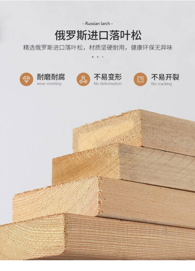 Selected Russian imported larch, the material is hard and durable, healthy and environment-friendly.