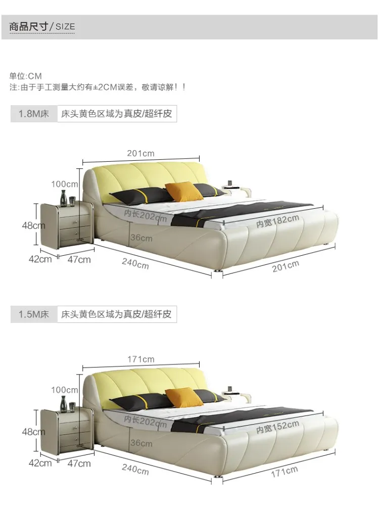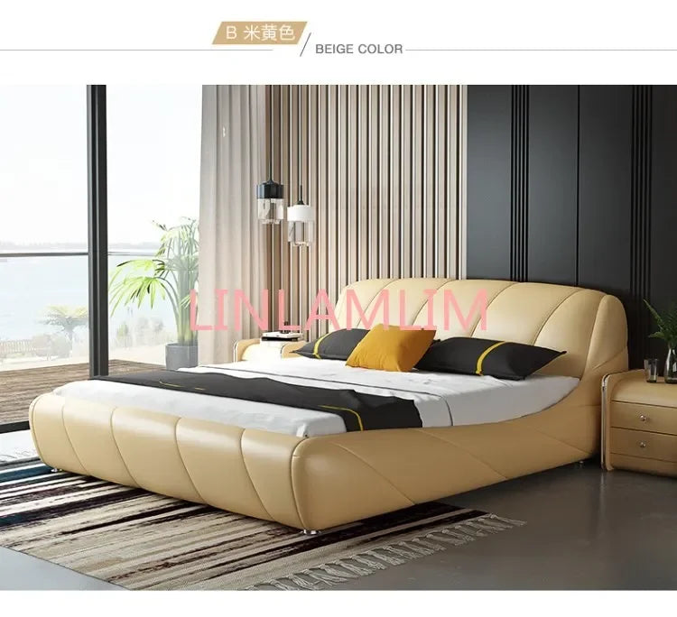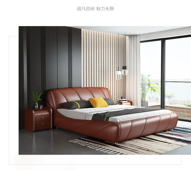 Real Genuine cow leather bed Soft Beds Bedroom camas lit muebles de dormitorio yatak mobilya quarto unique designer furniture
