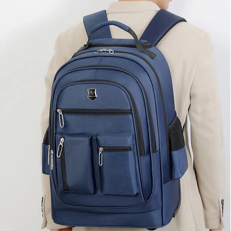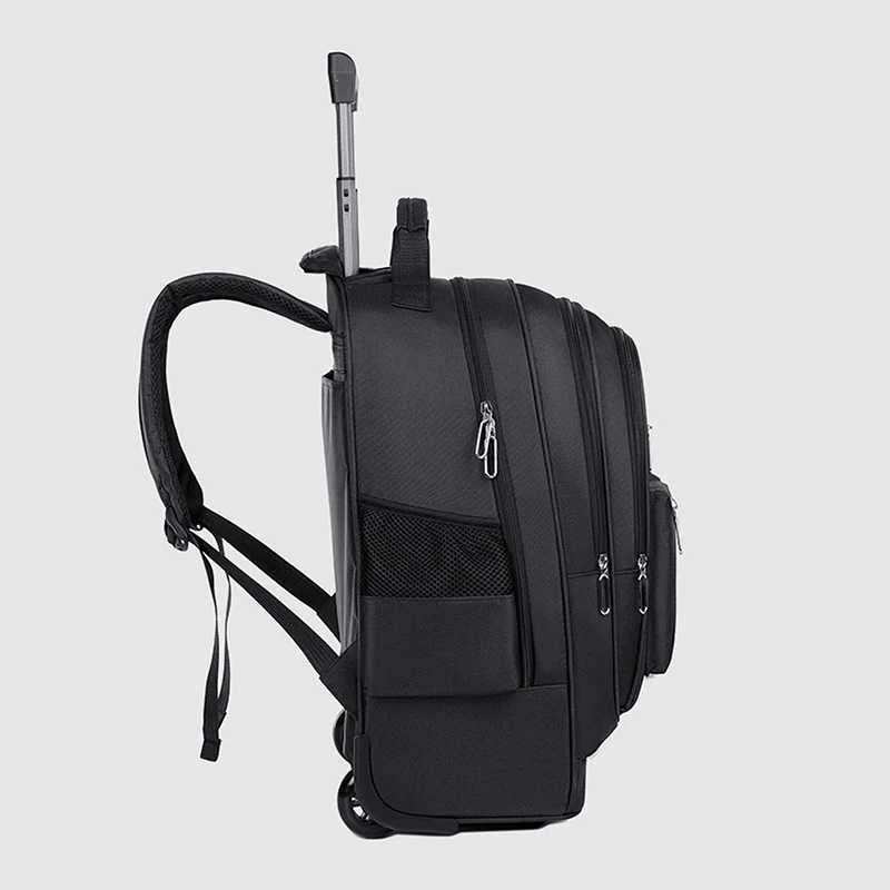 Rolling backpack is equipped with a retractable and sturdy pull rod, which can also be hidden in the backpack when not in use; Sturdy zipper, smooth and safe; Lightweight and soft hidden shoulder straps provide comfortable wearing
