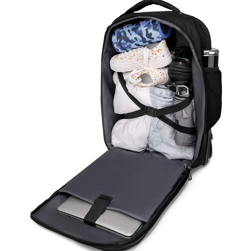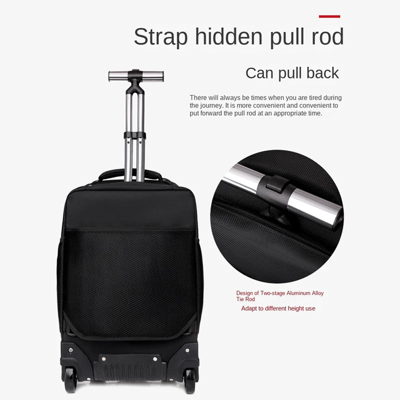 Rolling Backpack for Men Adults Business Carry on Luggage Laptop Wheeled Backpack Travel Suitcase Trolley Bag with Wheels,Black