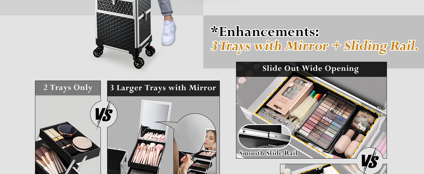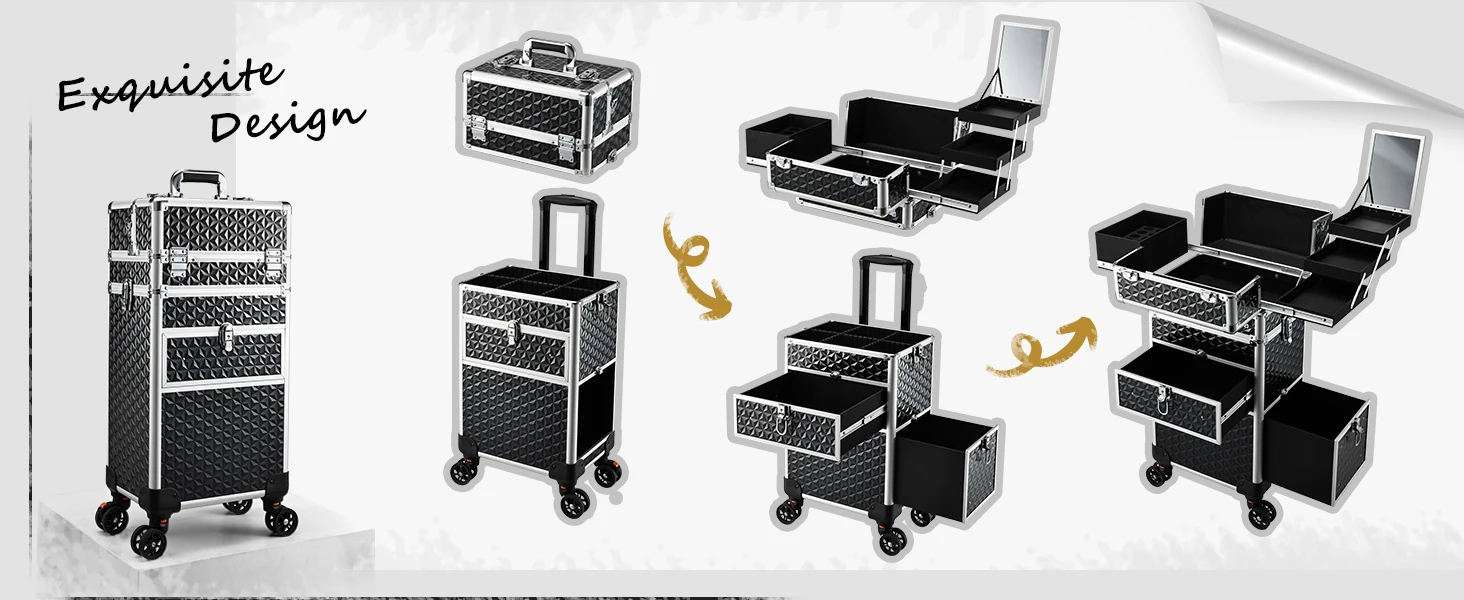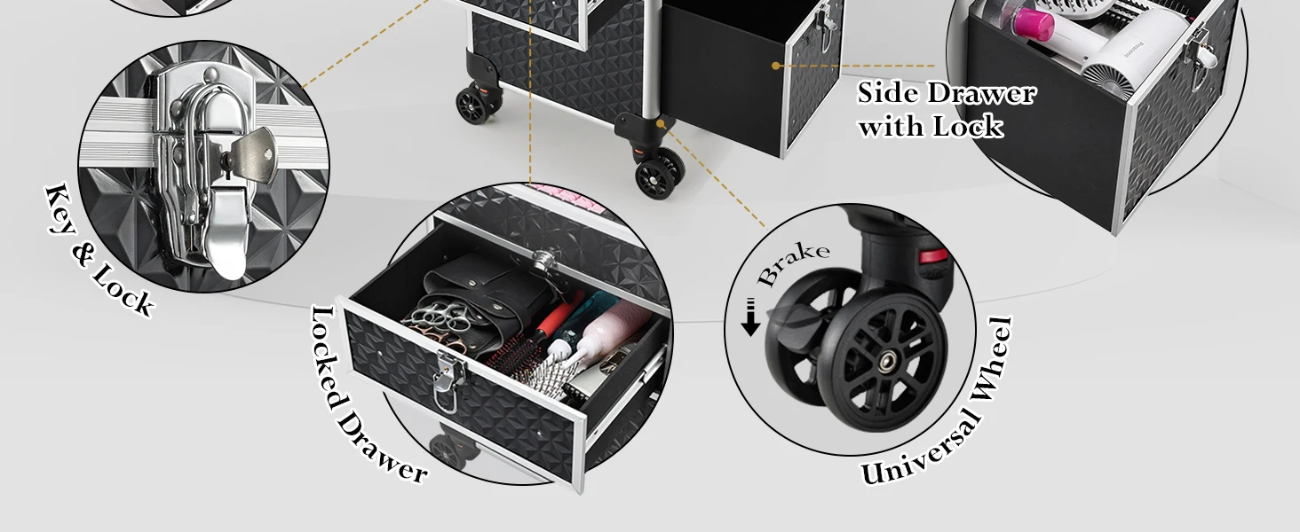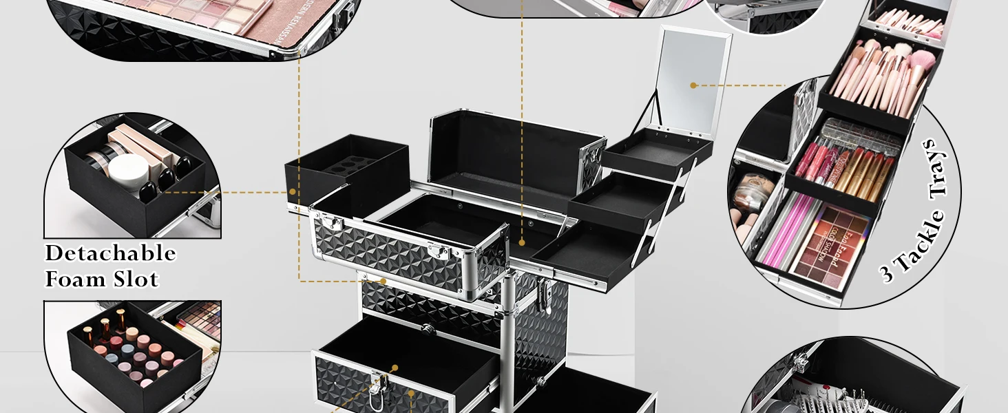 Rolling Makeup Case with Wheels Drawers Large Professional Cosmetology Trolley Case Lockable Travel Cosmetic Storage Train Case