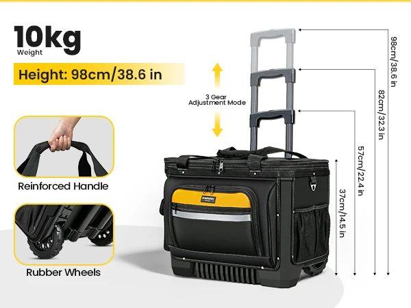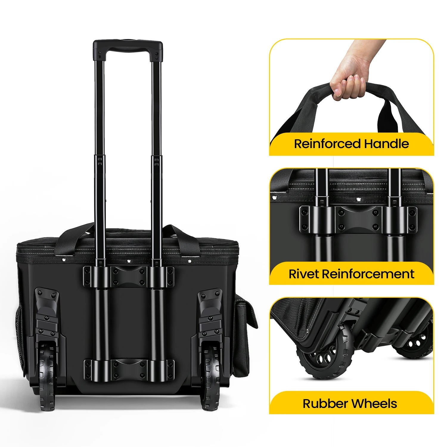 Rolling Tool Bag, Tool Bag with Wheels, Portable Storage Organizer Rolling Tool Tote, for Electrician, Construction, Men, Women