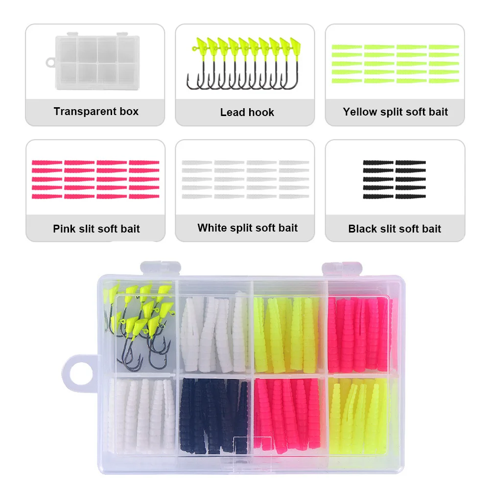 ![]() Soft Fishing Lures Kit with Split Tail Grub Worms Jig Head Hooks Silicone Artificial Bait Kit for Seasonal Trout Crappie Panfish Feature: