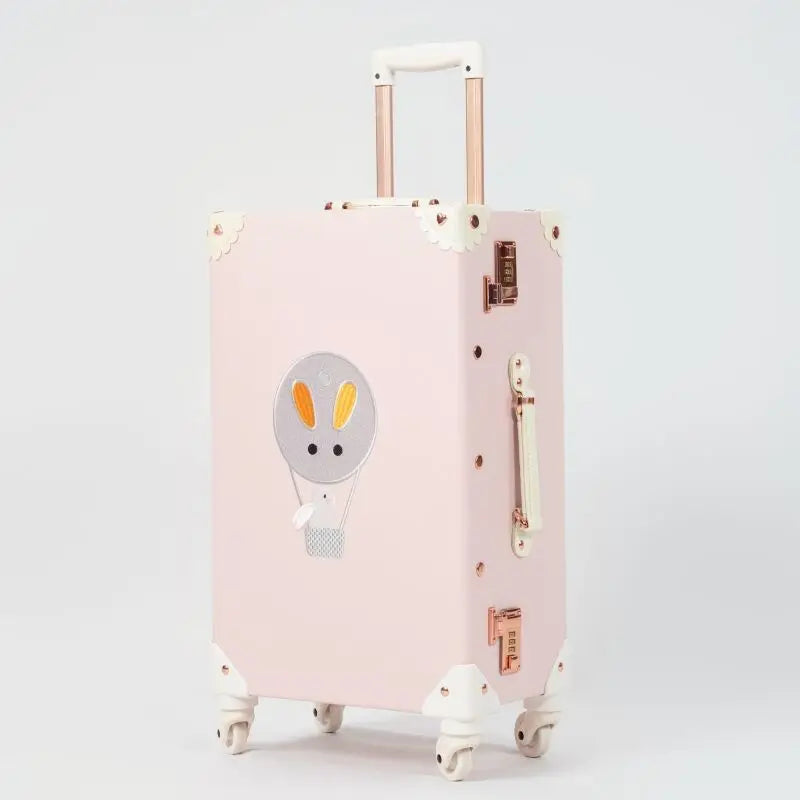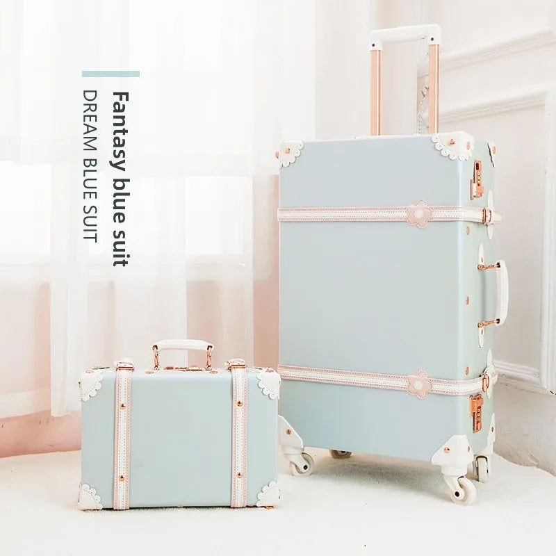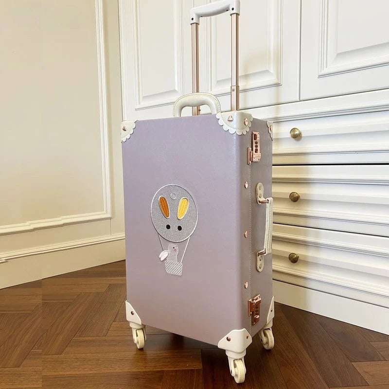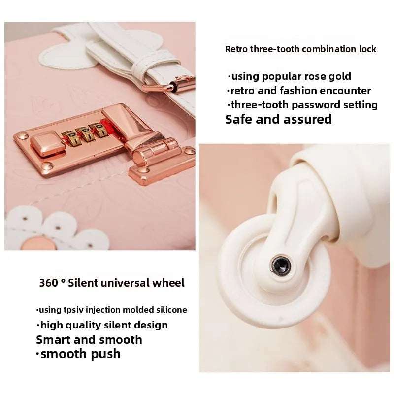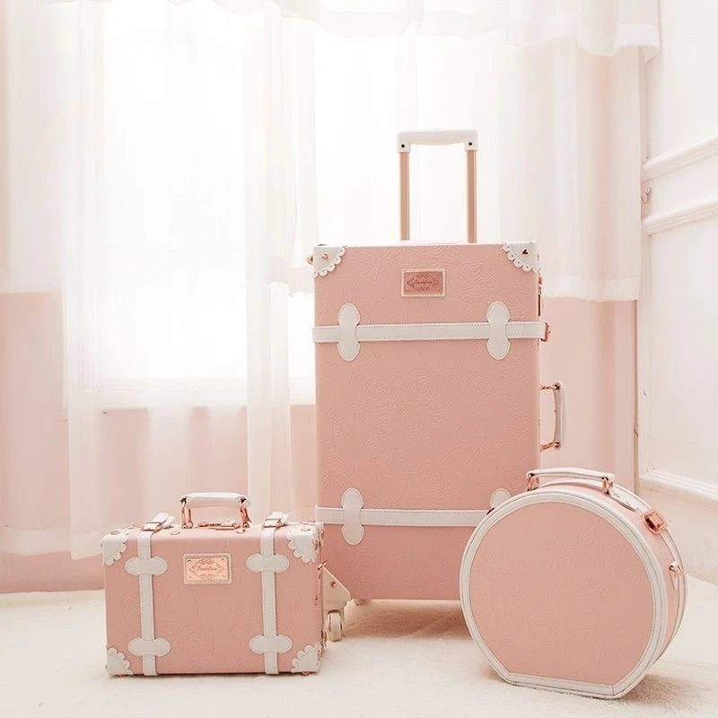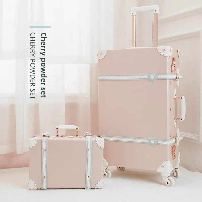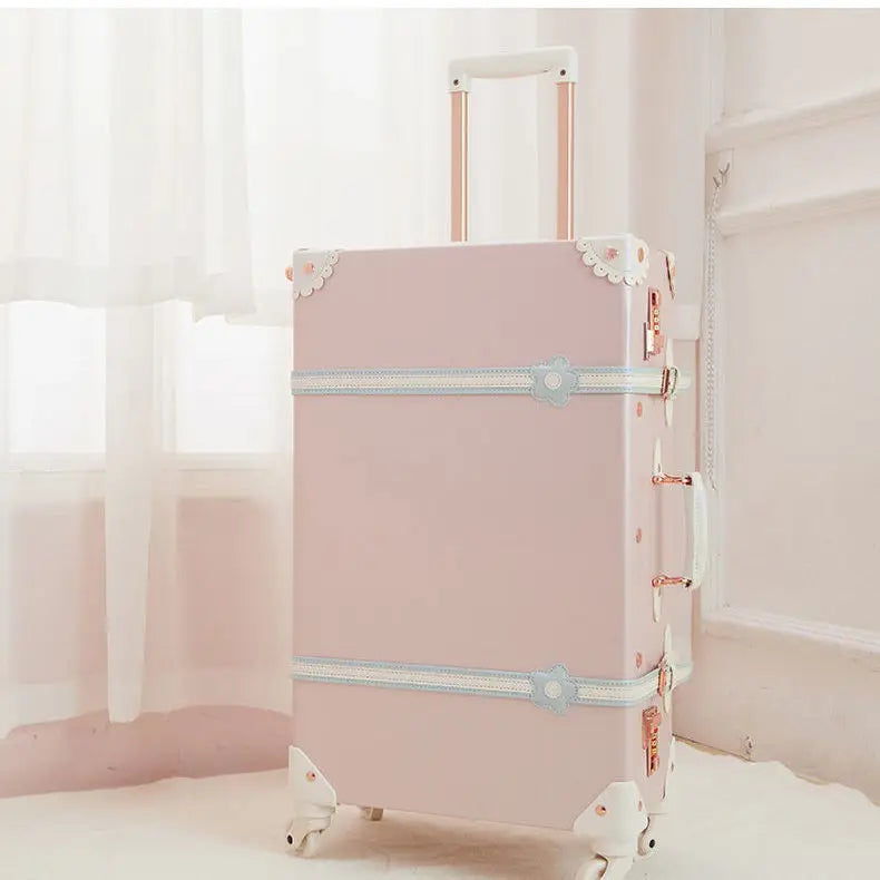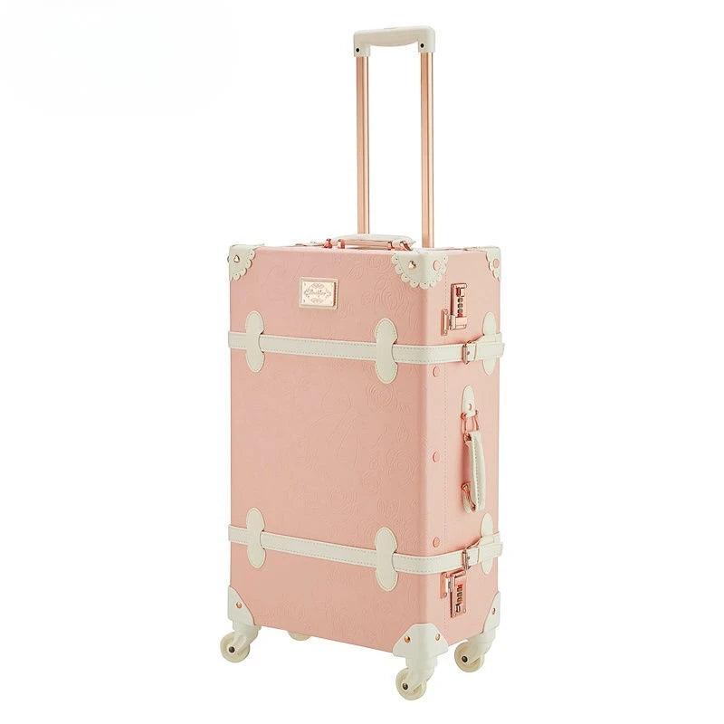 Vintage Style Luggage Carry On Trolley Suitcase With 360° Wheels For Women Men In Pink 20 22 24 26 Inch Cute Retro Travel Bag