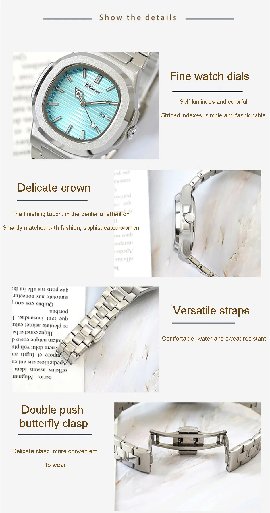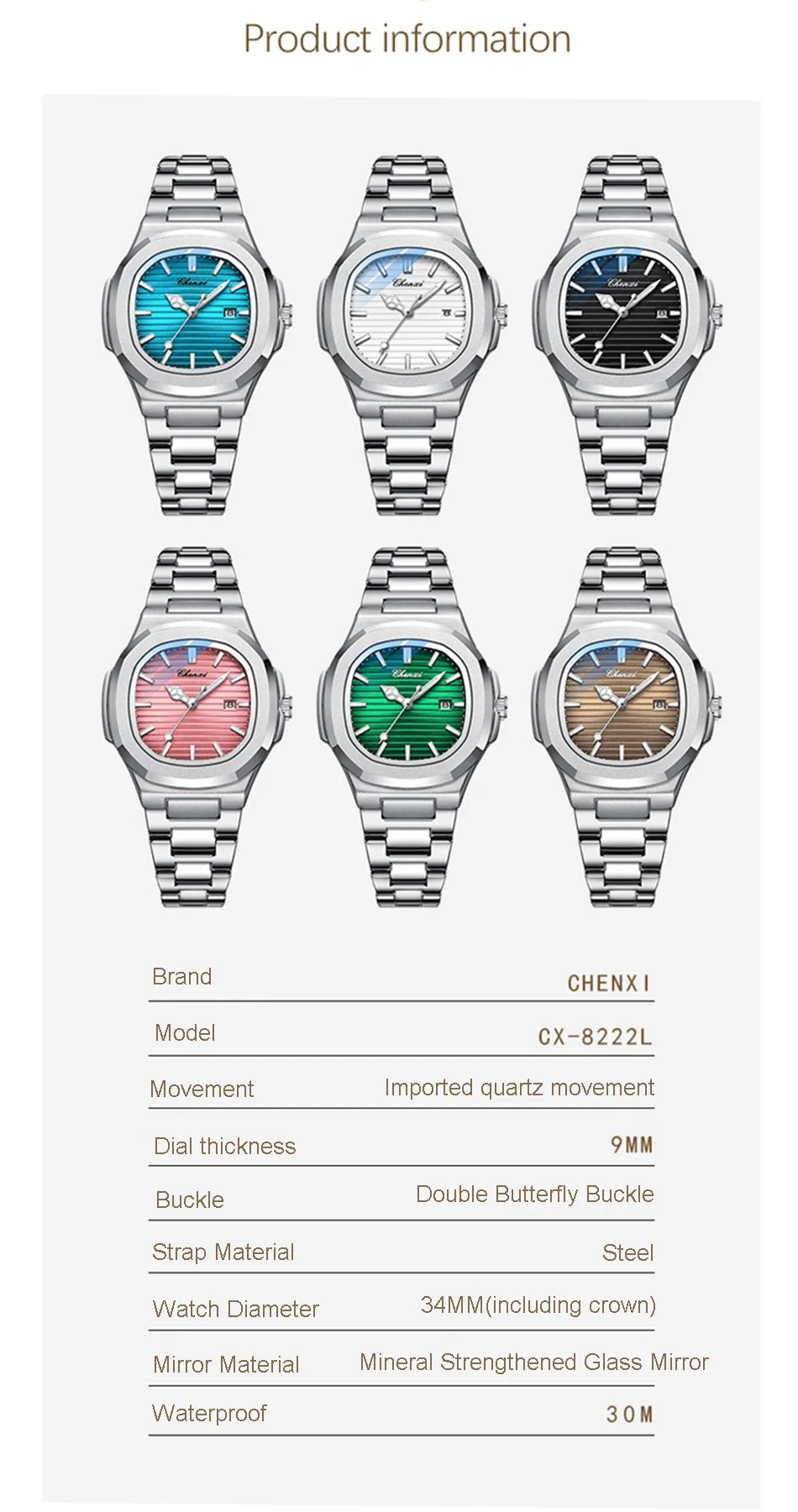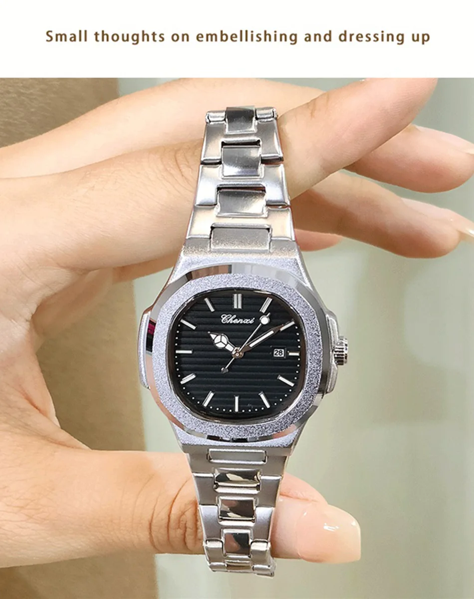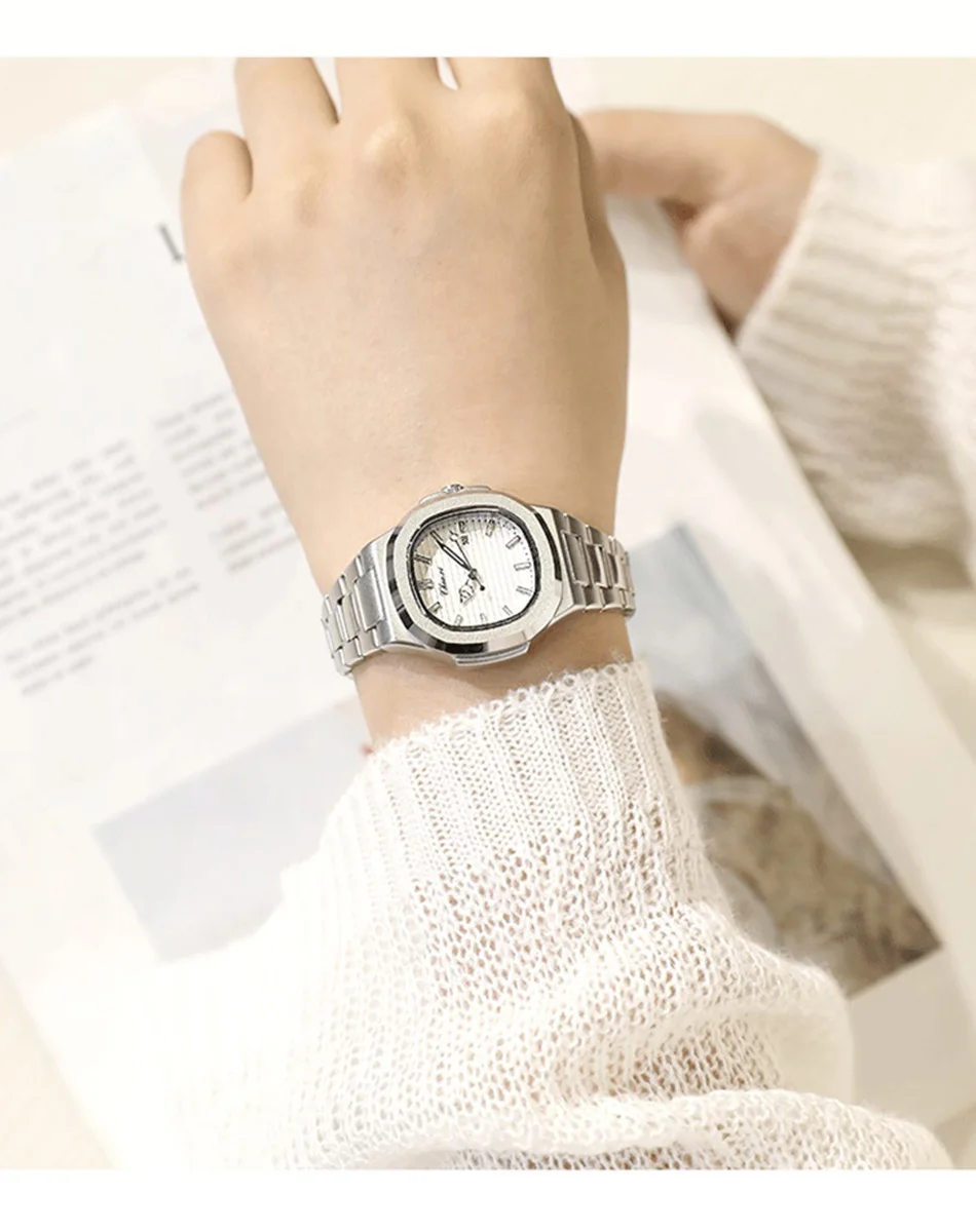 Watches For Woman Fashion Date Luminous Quartz Watch Silver Stainless Steel Clock Women's Stainless Steel Watch Waterproof