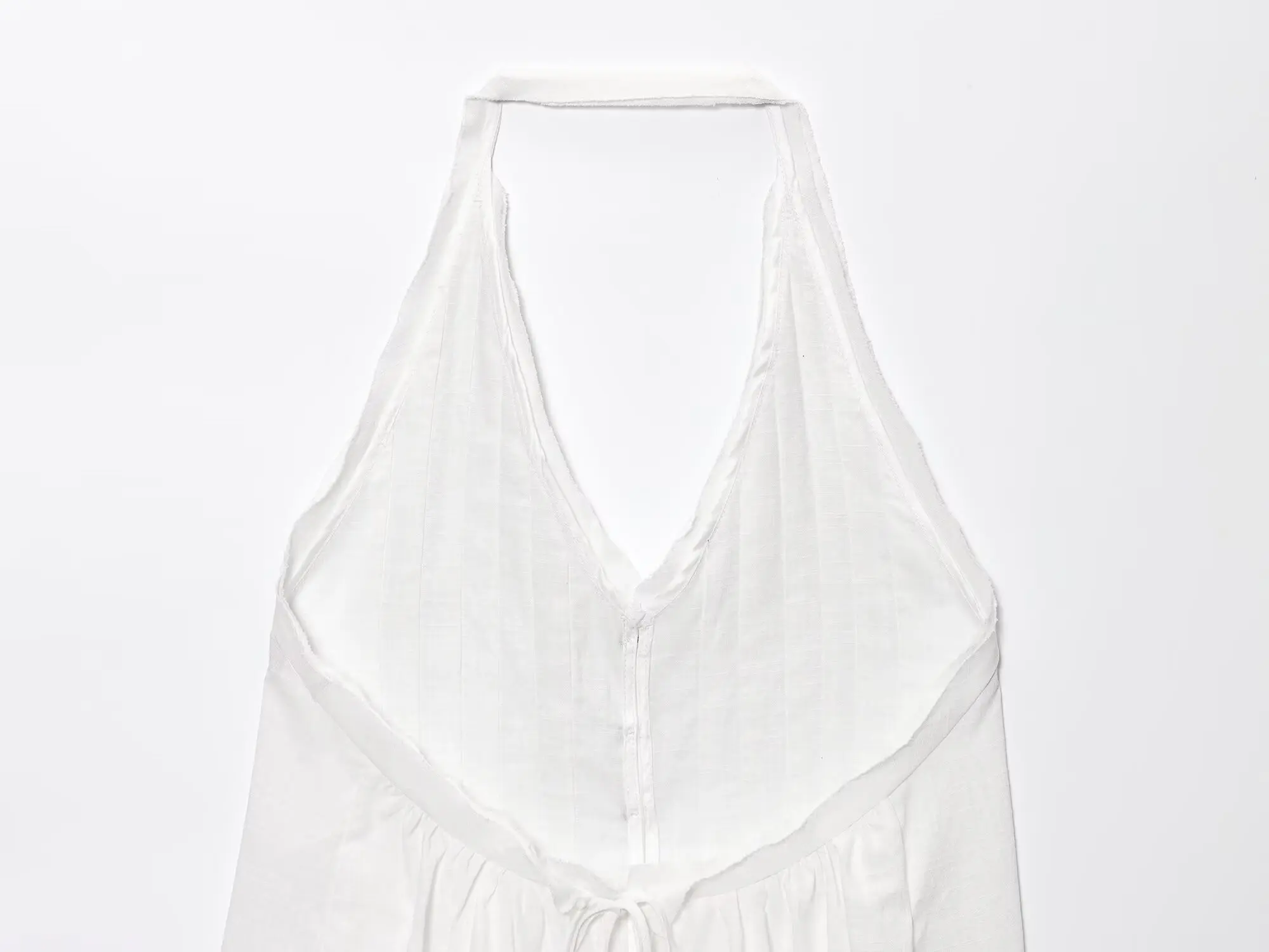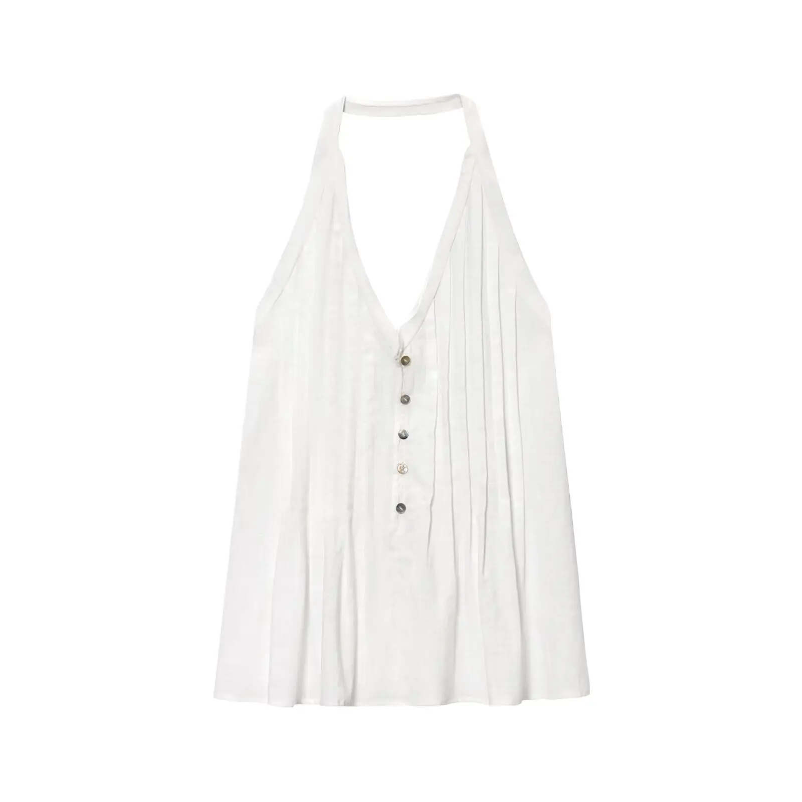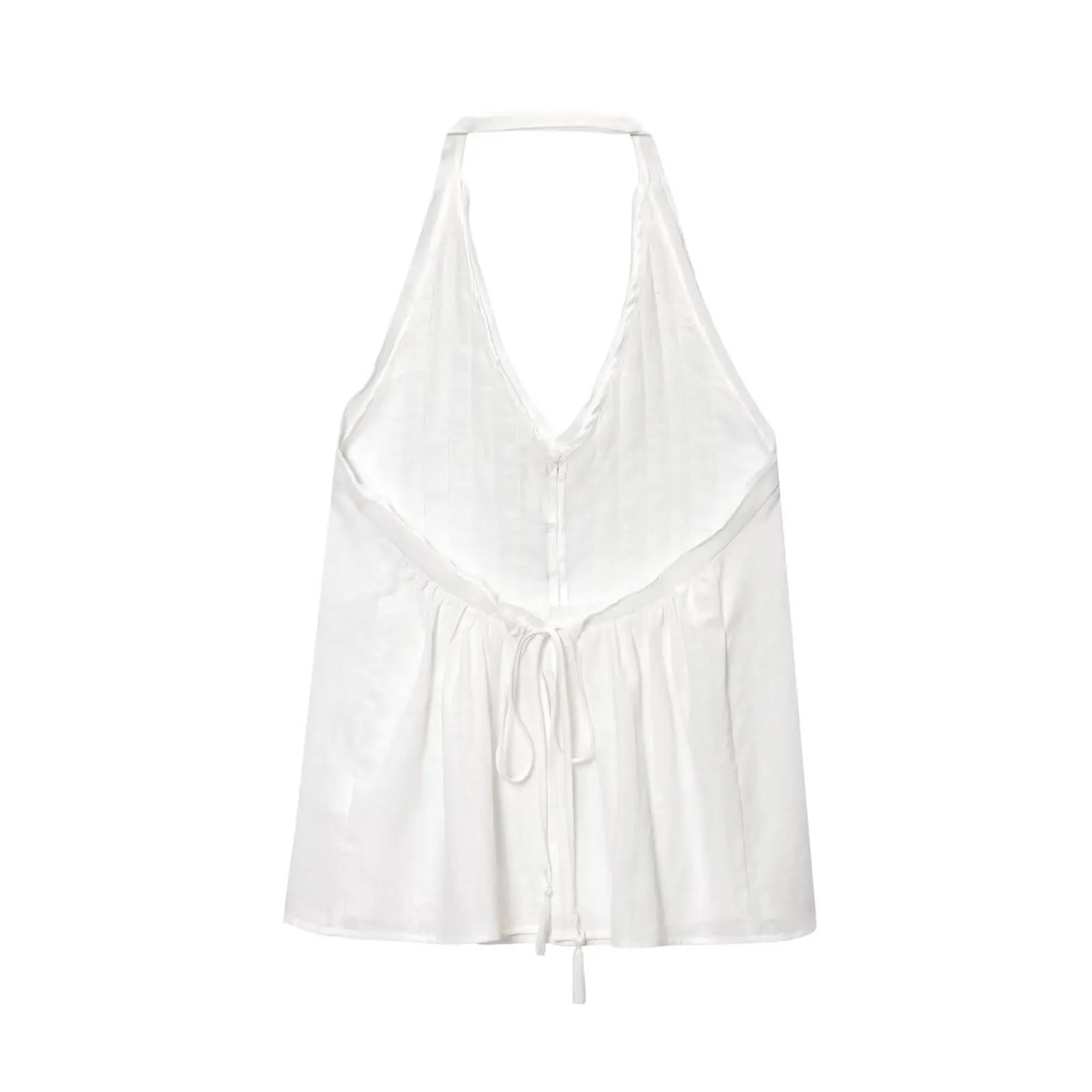 Women Clothing Backless Top Summer Short Crop Top Halter Neck Waistcoat Lady V Neck Camisole Back Drawstring Tops 5029121