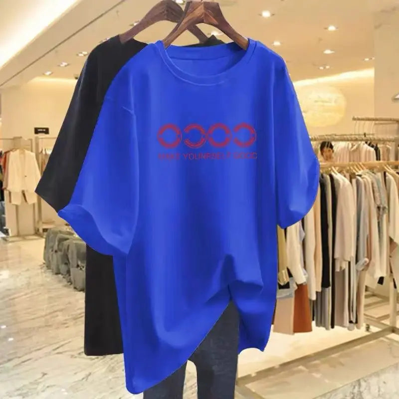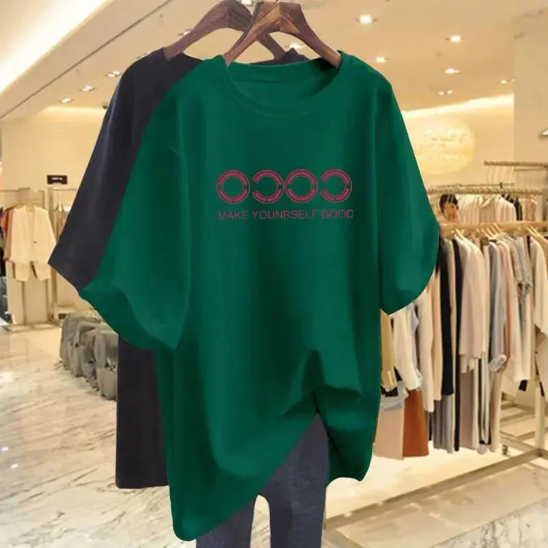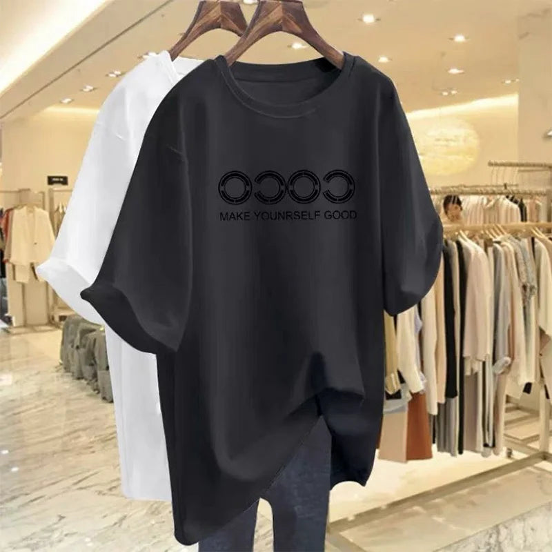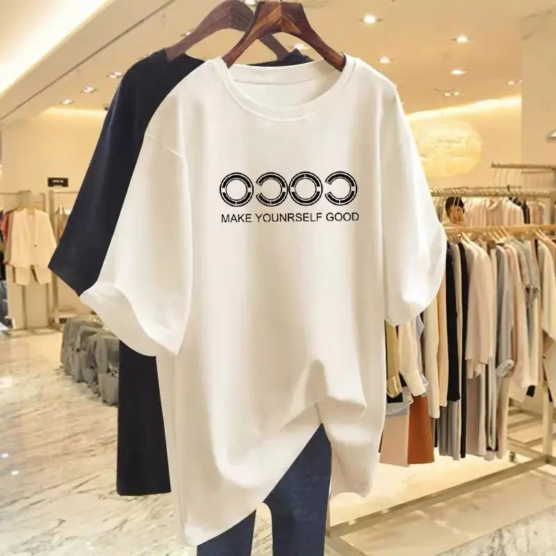 Women Clothing Chic Printed T-shirt, Summer, Pure Cotton, Short Sleeve O-neck Pullovers, Basics Tees Top