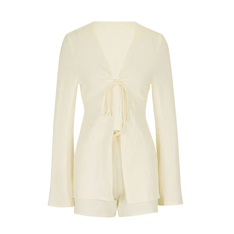 Women's Blouses Shorts 2 Piece New Spring Summer Streetwear Fashion Lace-up Long Sleeves Tees Sexy Shorts Two Piece Set Clothing