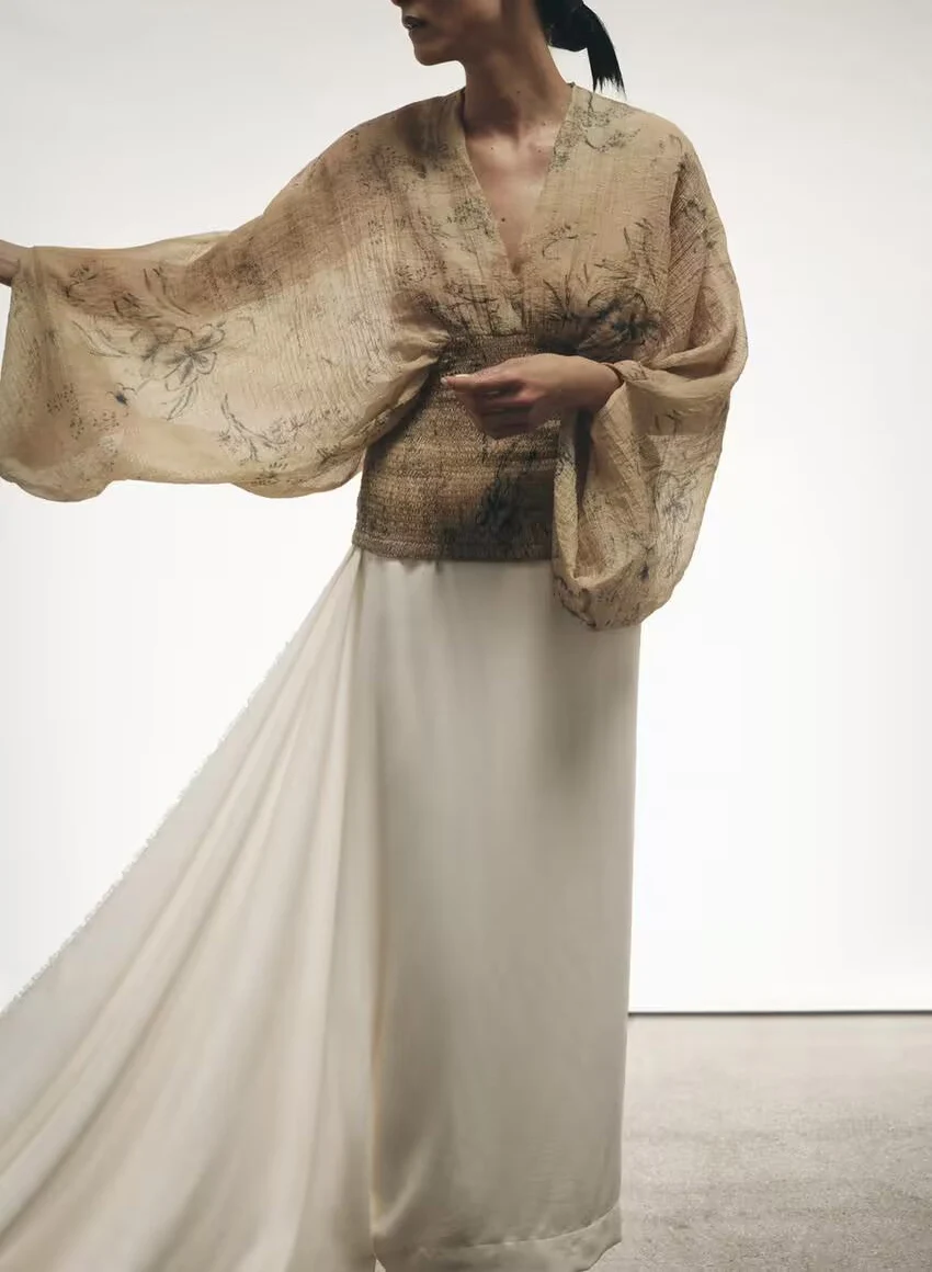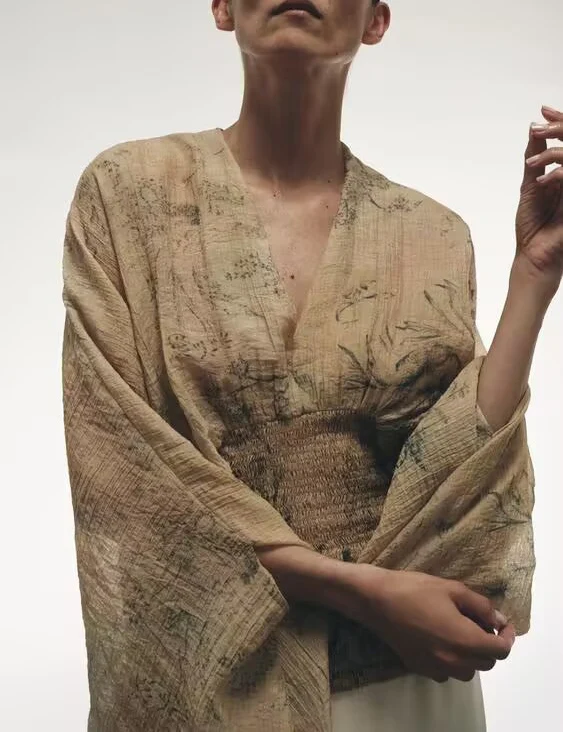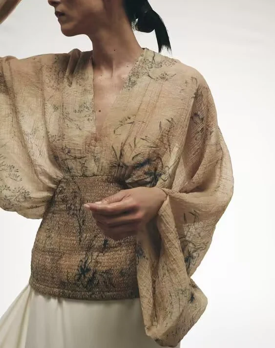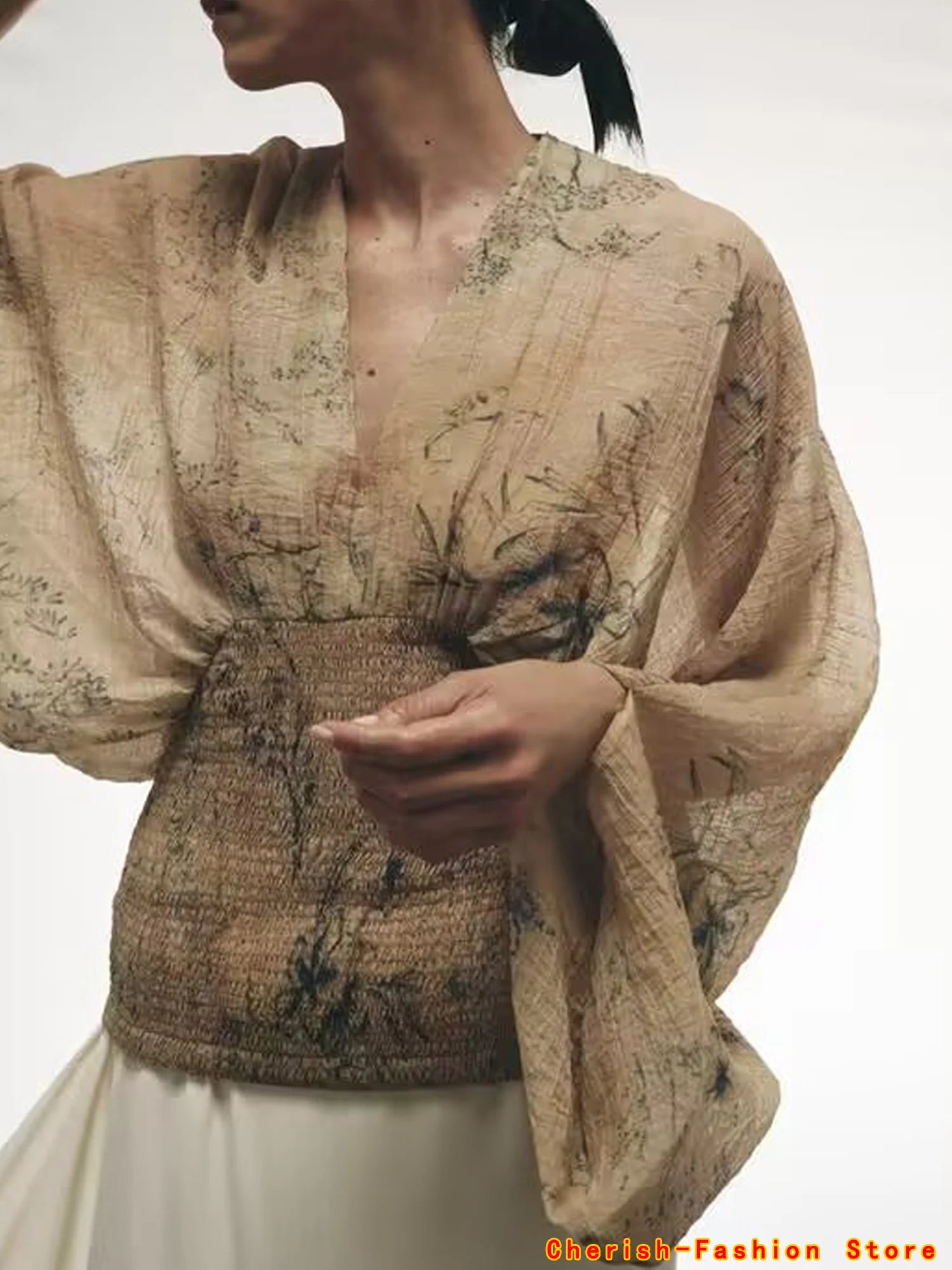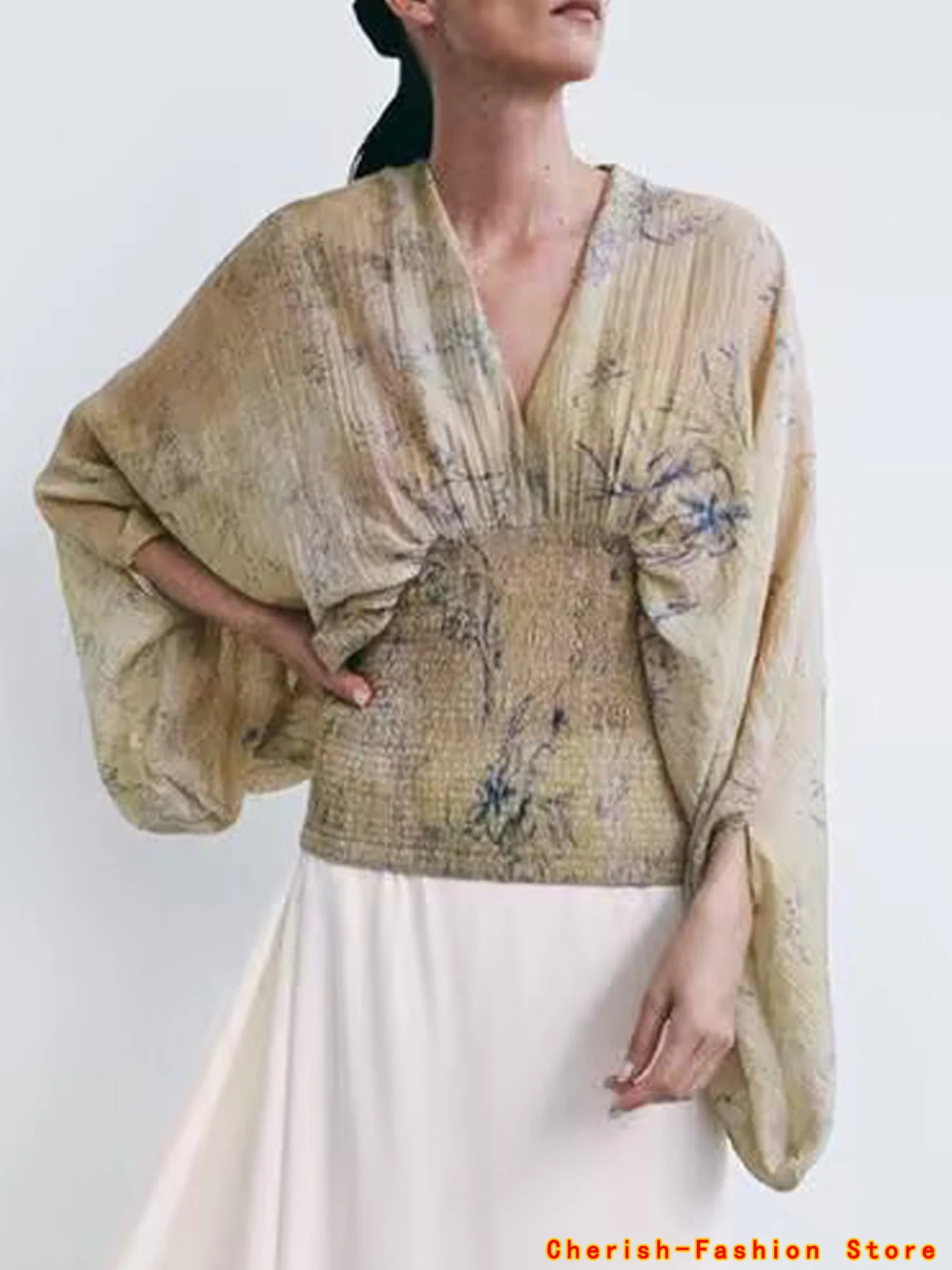 Women's clothing 2025 autumn new products European and American style retro women's clothing French lazy style printed shirt