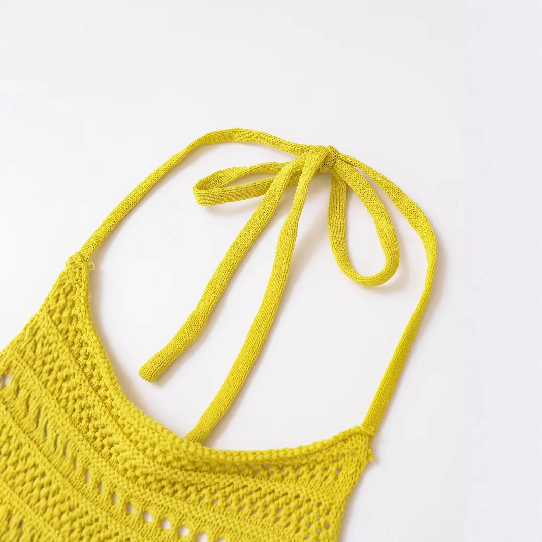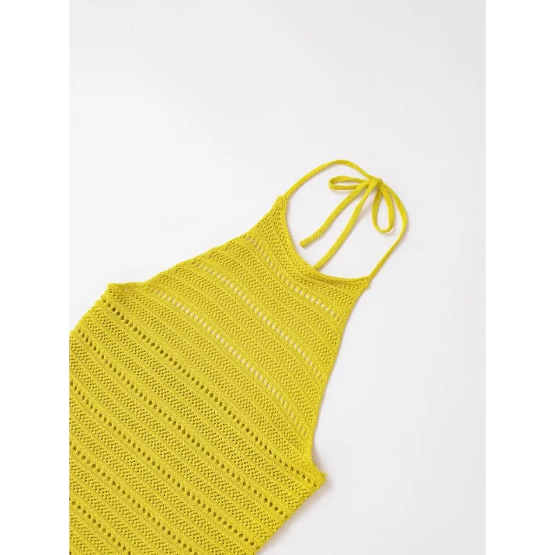 Women's Clothing 2025 Summer European and American Style Backless Sleeveless Hollow Neck Halter Sweater for Women