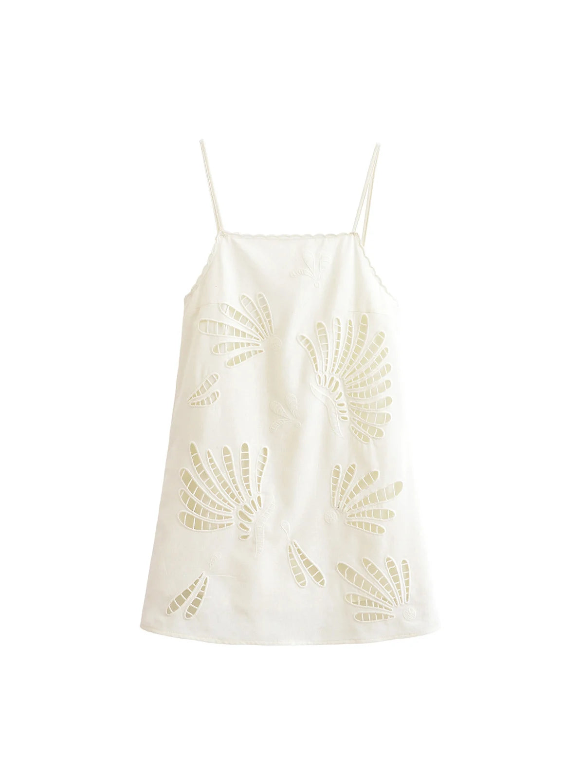 Women's clothing 2025 summer new fashion sexy hot girl hollow embroidered suspender dress