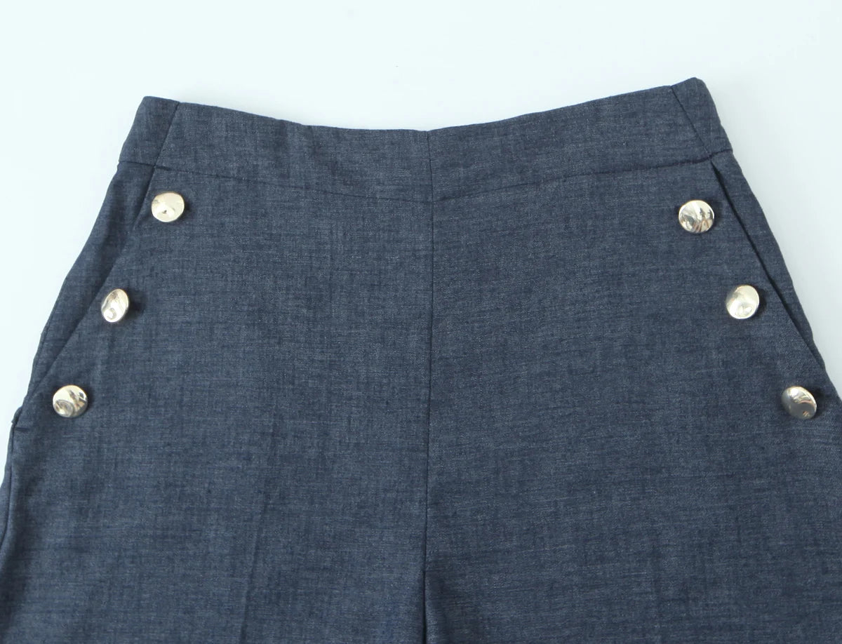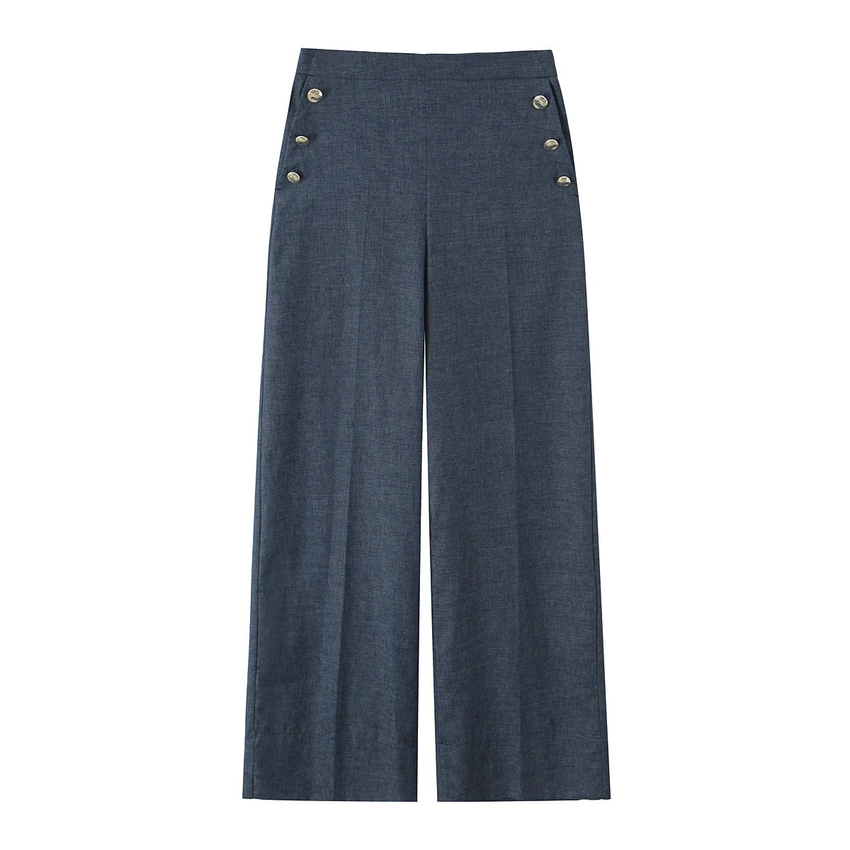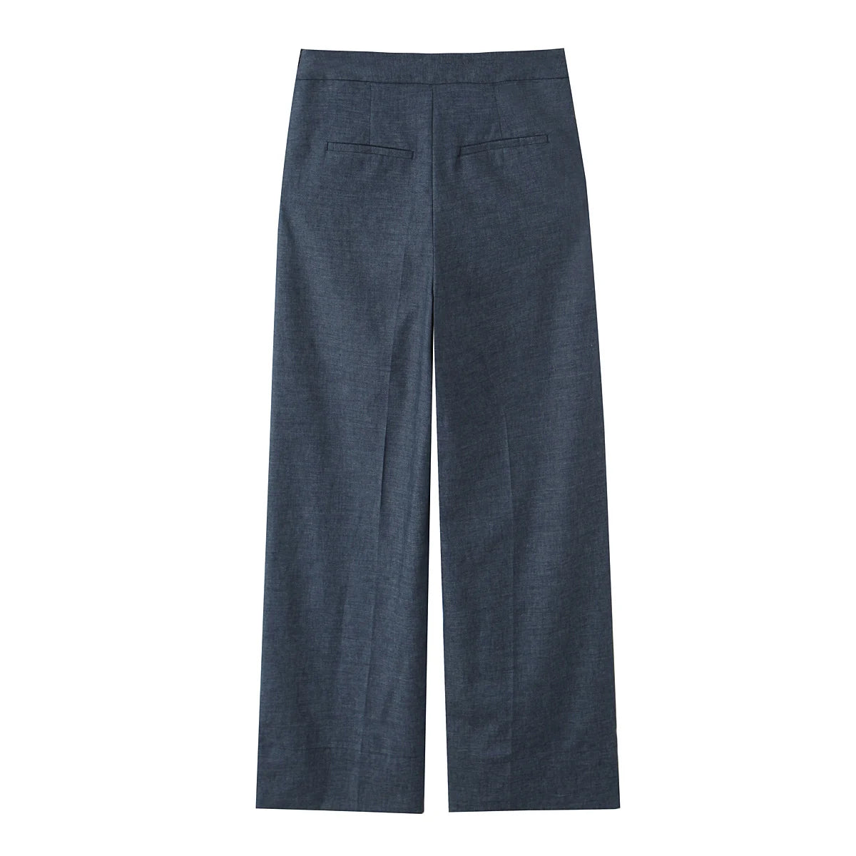 Women's clothing 2025 summer new product fashionable and versatile linen buttons high waist wide-leg casual trousers