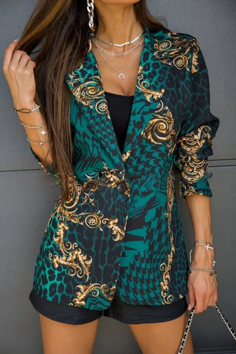 Women's Clothing Autumn and Winter New Commuter Color Printed V-Neck Long Sleeve Button Suit Jacket