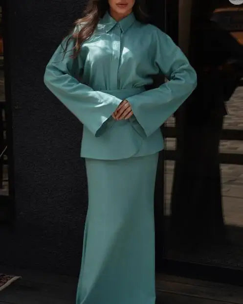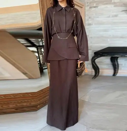 Women's Clothing Temperament Fashionable Lapel Long Sleeved Slim Fit Long Skirt Three Piece Set Simple Commuting Elegant Set