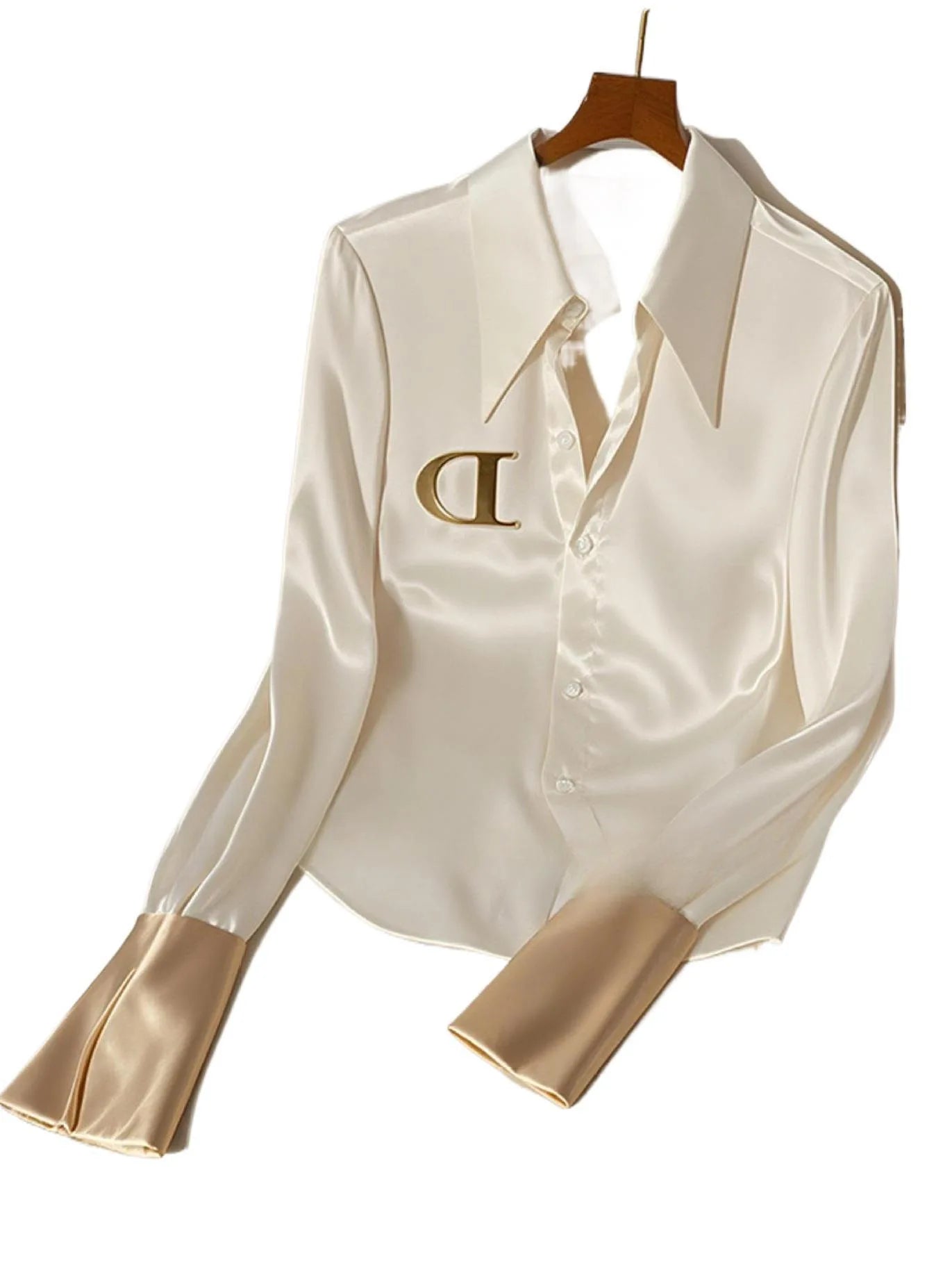 Women's Clothing Women Shirt Early autumn western-style high-end top niche unique cool white acetate satin shirt Blouses Shirts